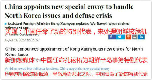 路透社这篇文章的标题是:“就在朝鲜半岛局势重新紧张之际,中国任命了新的特别代表”。
