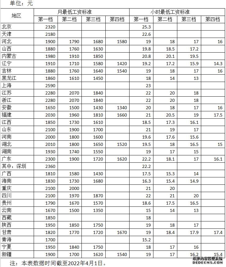 人社部近日发布了全国各地区最低工资标准情况(截至2022年4月1日),上海以2590元 位居榜首。13个地区月最低工资标准已经达到2000元及以上。
