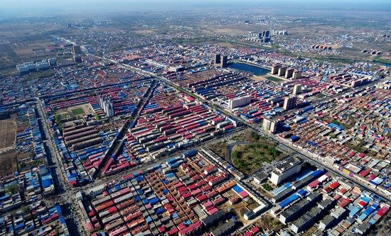 这是鸟瞰雄安新区雄县县城。河北雄安新区规划范围涉及河北省雄县、容城、安新3县及周边部分区域,地处北京、天津、保定腹地,区位优势明显、交通便捷通畅、生态环境优良、资源环境承载能力较强,现有开发程度较低,发展空间充裕,具备高起点高标准开发建设的基本条件。雄安新区规划建设以特定区域为起步区先行开发,起步区面积约100平方公里,中期发展区面积约200平方公里,远期控制区面积约2000平方公里。日前, 河北雄安新区筹备工作委员会计划将30平方公里启动区的控制性详规和城市设计面向全球招标,开展设计竞赛和方案征集。从空中俯瞰雄安新区,沃野千里的华北平原和沟渠纵横的白洋淀尽收眼底。