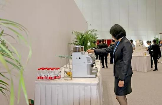 除了农夫山泉玻璃瓶装矿泉水外,大家日常饮用的红装水,同样是本次峰会的用水。
