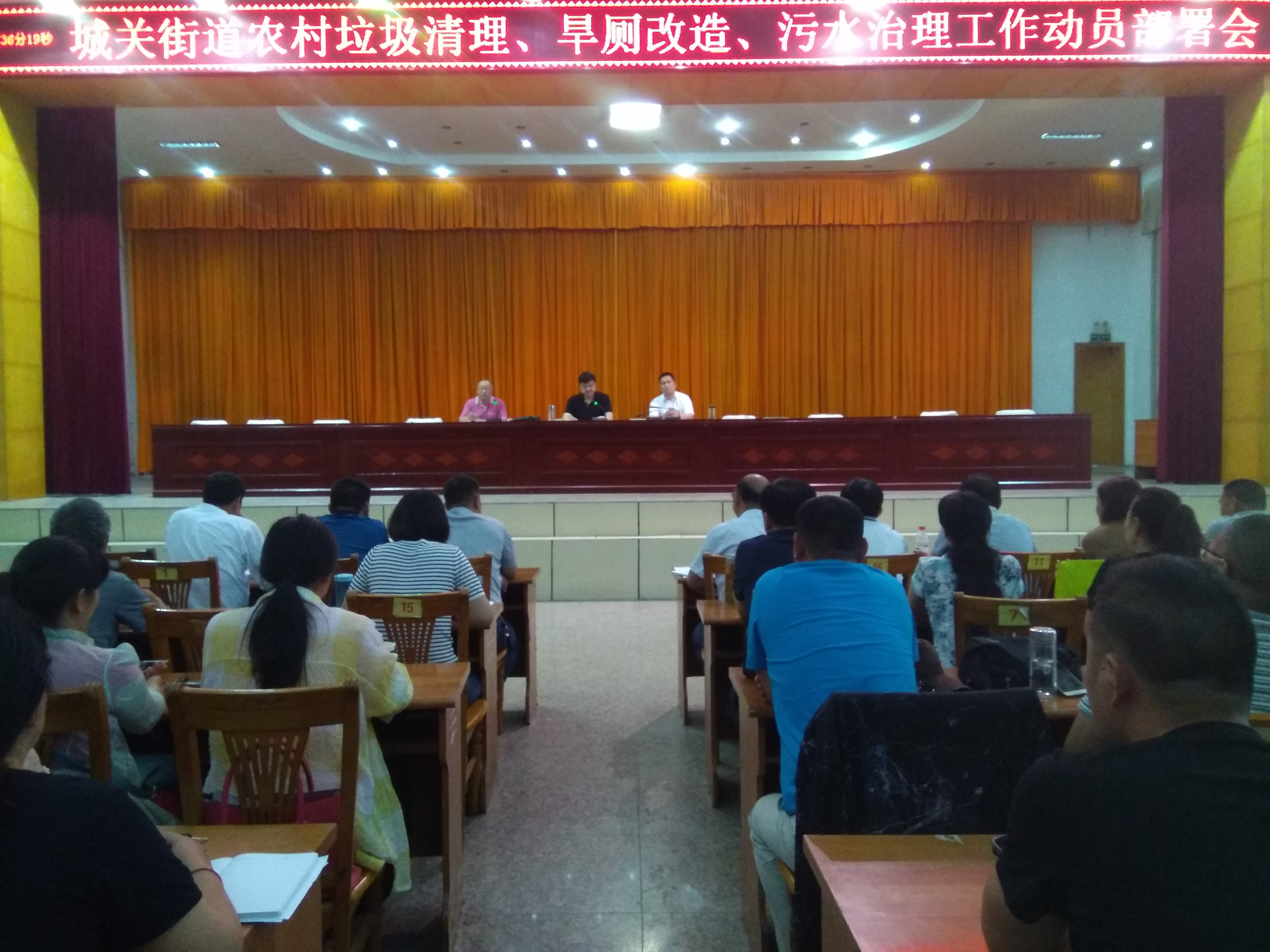 6月16日下午临泉县深化城乡环境综合整治一体化推进农村垃圾污水厕所“三大革命”暨村镇生活垃圾治理PPP项目启动大会召开,城关街道党工委书记马超在会议结束后随即召集街道各部门负责人和各社区(村)书记、主任,连夜召开会议传达县“三大革命”会议精神,并结合城关街道实际情况,就如何贯彻落实“三大革命”会议精神进行了动员部署。
