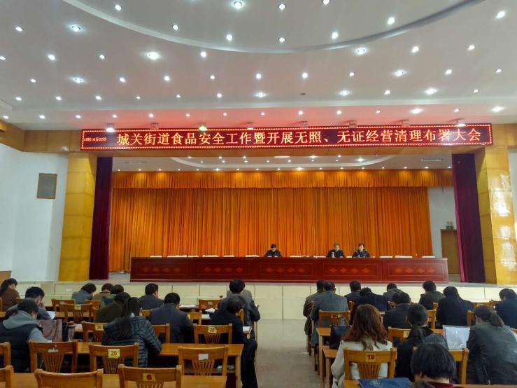 城关街道食品安全工作暨开展无照、无证经营清理部署大会于3月12日下午在城关街道办会议中心举行。城关市场监管所王冠男所长及城关街道成员单位负责人出席会议,部署食品安全工作,秉承“促进公平、公开、公正竞争”的原则,切实维护市场秩序和安全。