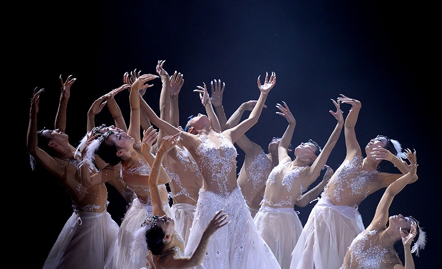 而在雪中演员们几乎都穿着纯白色戏服,加上舞台上一直在下雪,整个舞台一直白茫茫一片非常空灵,演员们柔软的舞姿和剧情的创意让观众禁不住不断鼓掌。