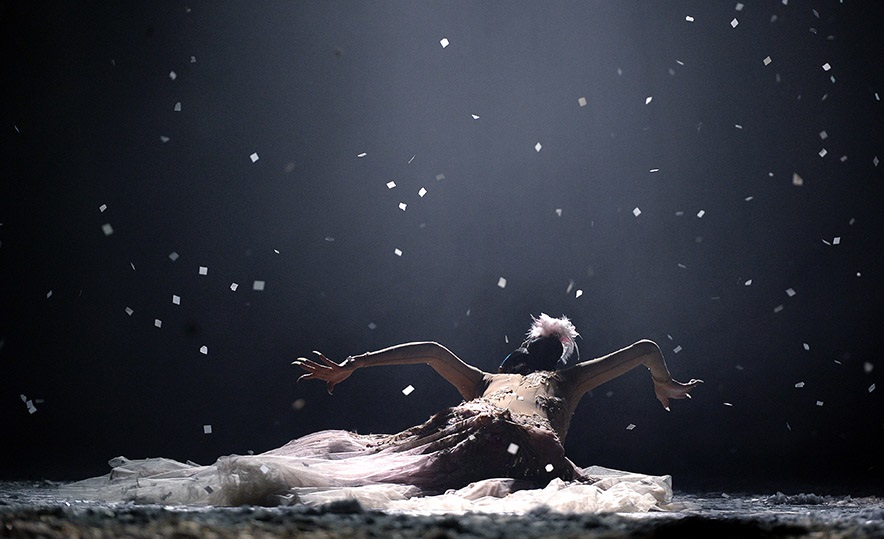 杨丽萍因孔雀舞成名,其精湛的舞技、唯美的造型深入人心,用独特的舞蹈语言为孔雀舞赋予了绚丽的神韵。《孔雀之冬》取自《孔雀》“春、夏、秋、冬”中“冬”的一幕,独立成章,以“与冬天相恋、向死而生”为主题。